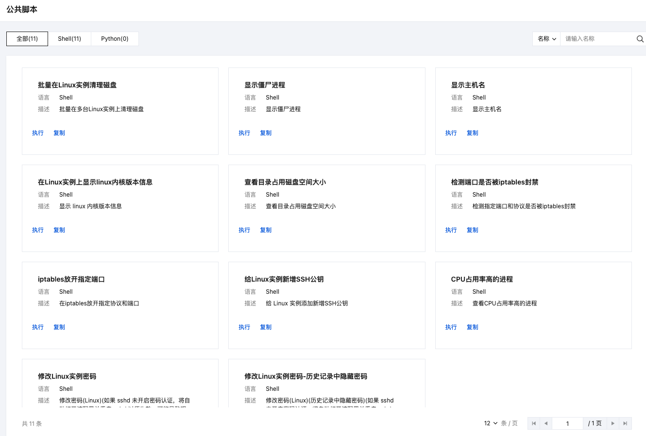 为了方便使用,应用运维平台针对常见场景提供了公共脚本。您可以直接使用已有脚本进行快速的任务执行。