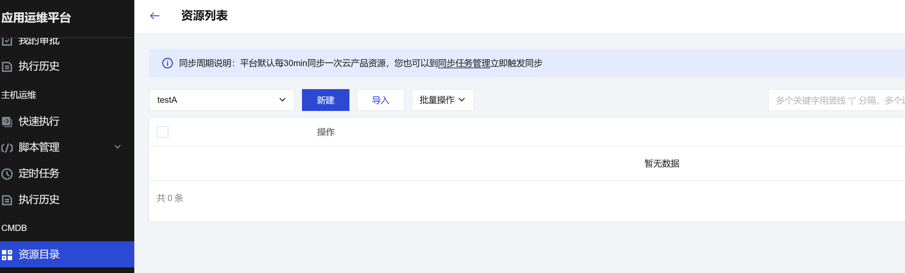 - 导入单个资源:单击新建,在弹出的页面填写资源的相关字段,单击保存。